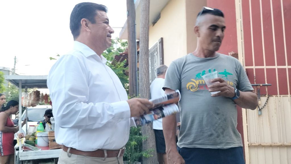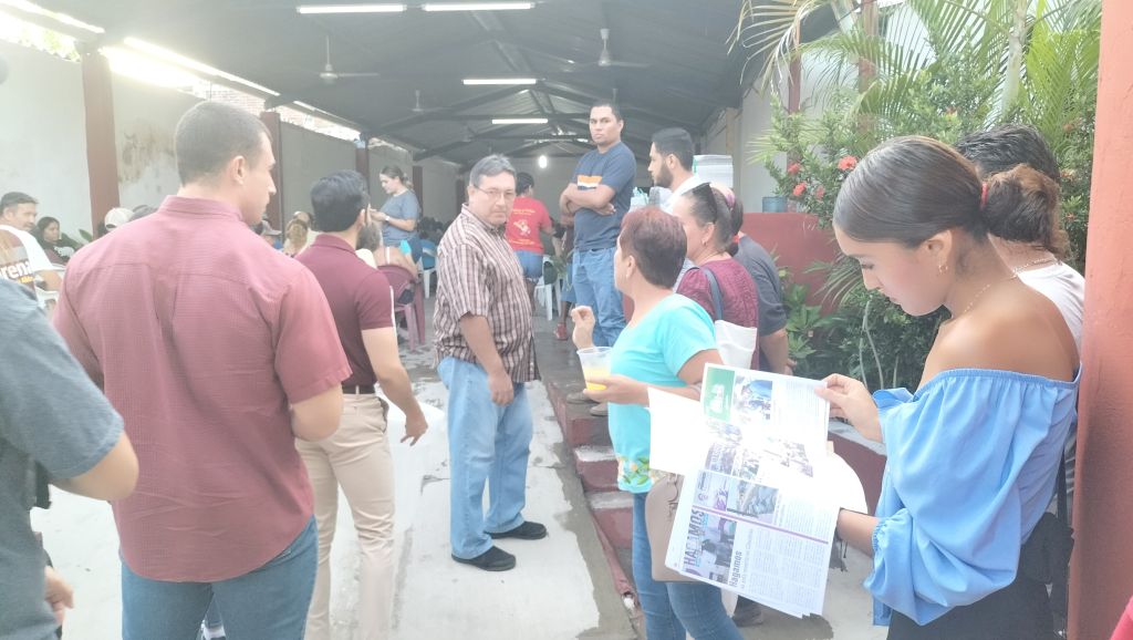 Después de reunirse en el café Aroma con liderazgos locales, con una hora de retraso llegó al “Castillo de los Sueños”, ubicado en el popular barrio de Los Almendros, donde decenas de personas y menores de edad se encontraban desesperados por la impuntualidad y el clima caluroso.