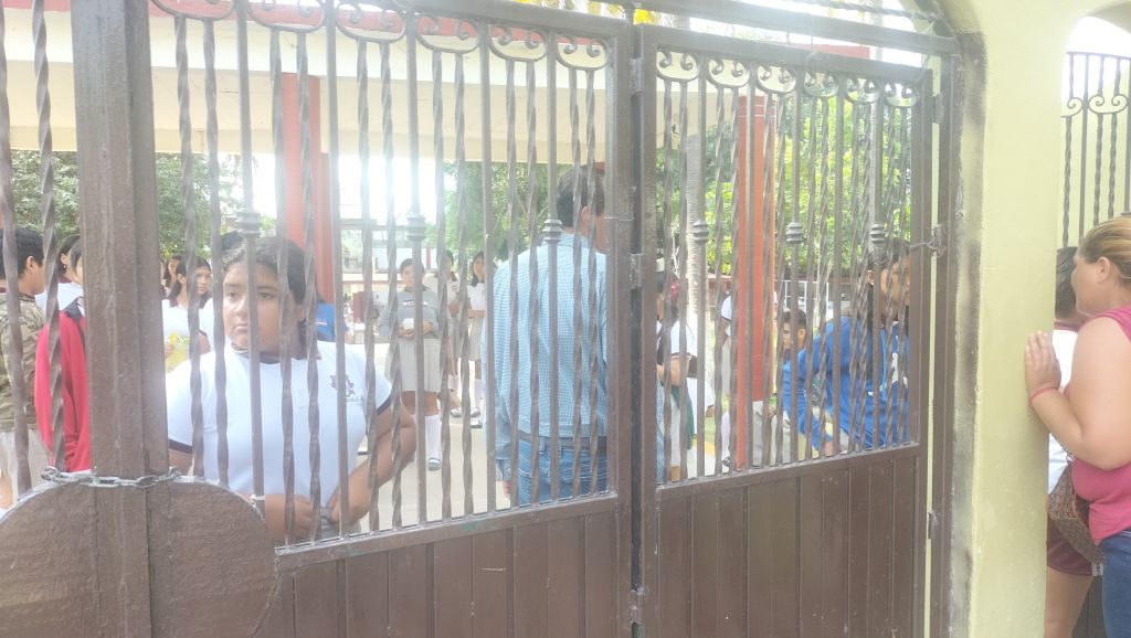 Padres de familia se quejan del trato amenazante y prepotente del director, quien mantiene las puertas de la escuela como una cárcel, hasta con candados y revisiones. (07 Noviembre 2023)