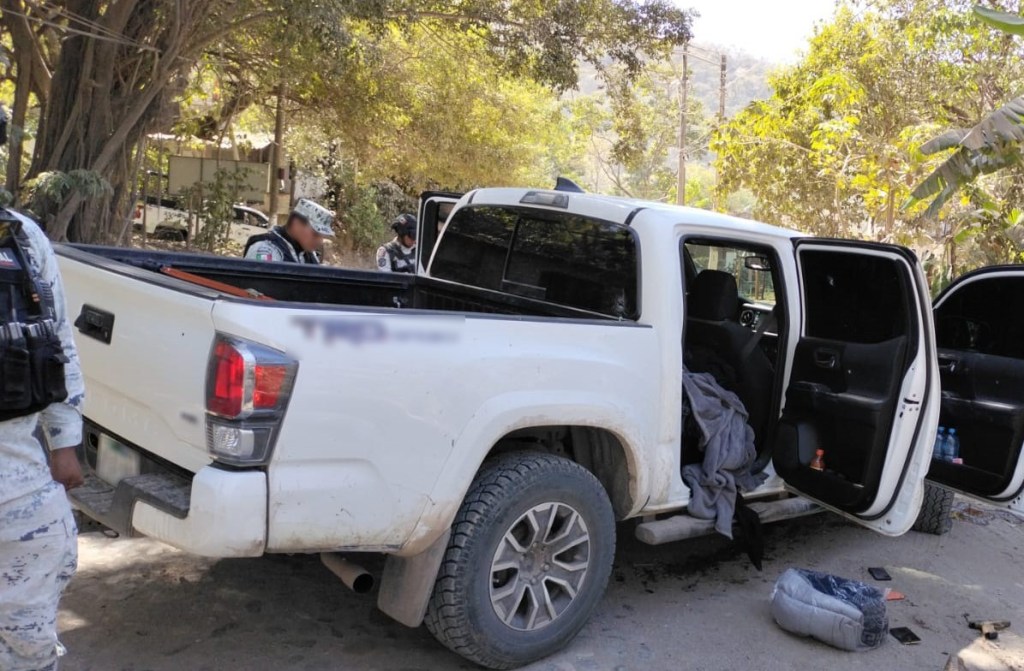 Aquel martes, mientras vigilaban en las calles de la comunidad conocida como “El Ranchito”, los oficiales avistaron a la distancia una camioneta estacionada con dos hombres armados recargados en ella, estos al percatarse de la presencia de autoridades federales, ingresaron al vehículo para escapar.