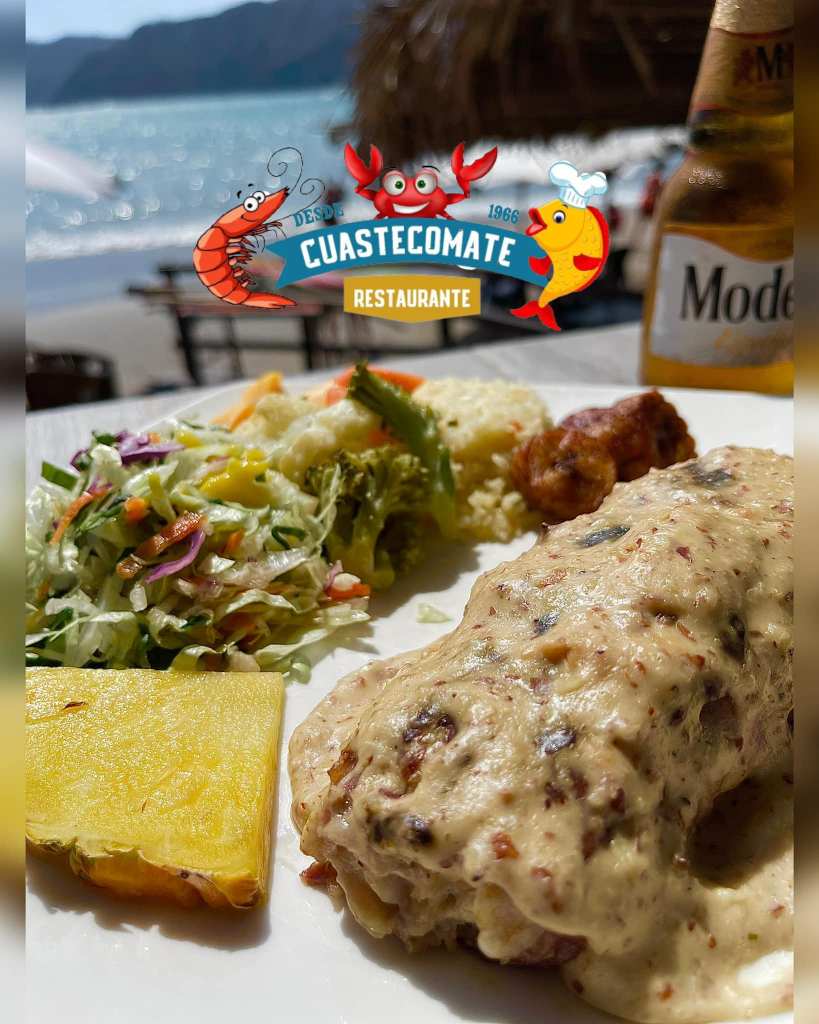 A pocos minutos de Melaque, entre una zona arbolada y riscos, se localiza el Restaurante Cuastecomate que ofrece desayunos y comidas con un sabor que ha trascendido más allá de la zona turística de Costalegre, donde es catalogado como uno de los mejores para disfrutar de la naturaleza (mar) y mariscos.