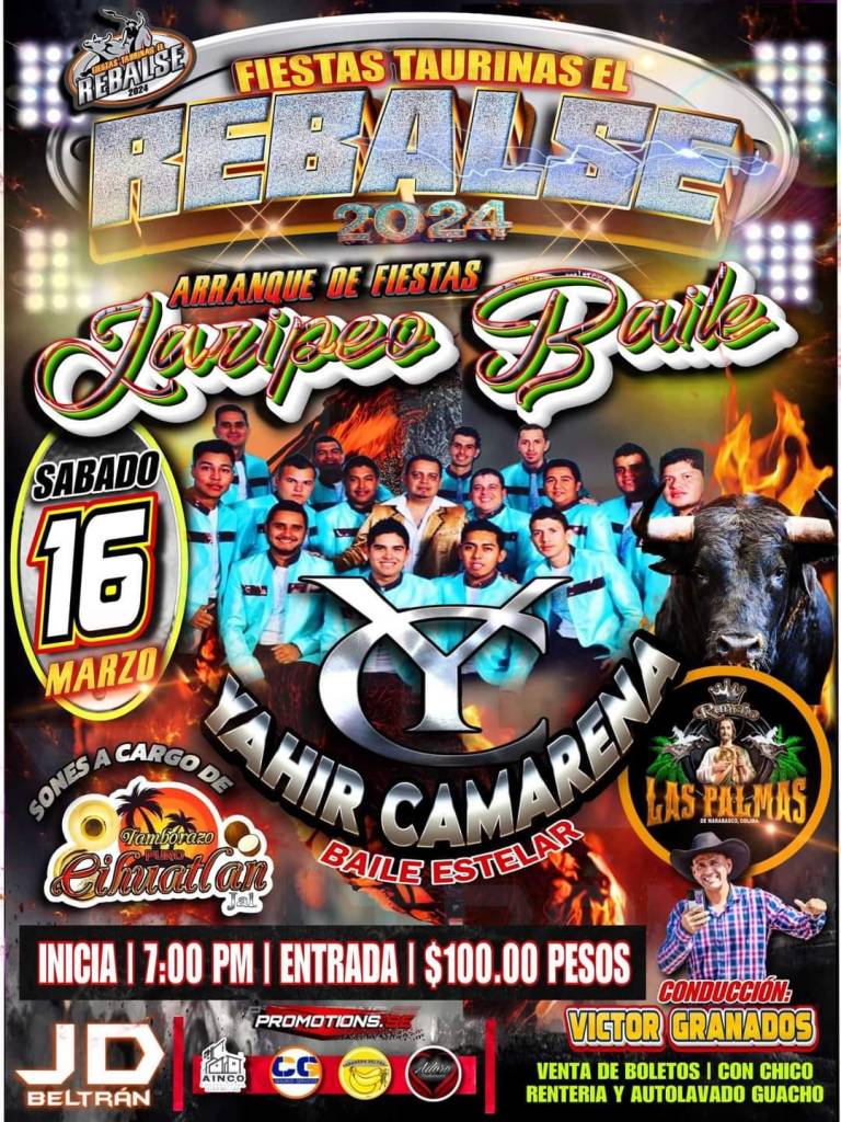 Del 15 al 19 de marzo habrá fiestas taurinas en la comunidad de El Rebalse presentándose prestigiadas ganaderías y grupos musicales de la región costa sur de Jalisco.