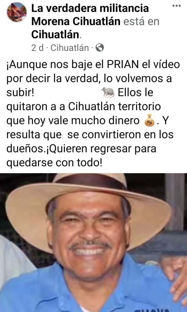 Al mismo tiempo que promovía también a Fernando Gómez Carrasco, priista que gobierna el municipio costero de La Huerta, se dedicó a difundir acciones y logros del gobernador Enrique Alfaro y el actual candidato de Movimiento Ciudadano, Pablo Lemus.