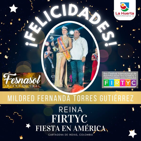«Además, es un honor informarles que, dentro del mismo festival, hubo un certamen en el que cada ballet presentó a su representante para contender por el título de Reina. Nuestra querida Mildred Fernanda Torres Gutiérrez obtuvo dicho título, poniendo el nombre de La Huerta en lo más alto y demostrando a nivel internacional la belleza y talento de la mujer huertense».