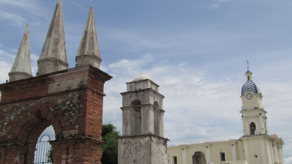 2017: Tonaya, la tierra del mezcal. Las ruinas del templo antiguo en primer plano. Al fondo el nuevo templo donde se venera a la imagen de la Virgen.