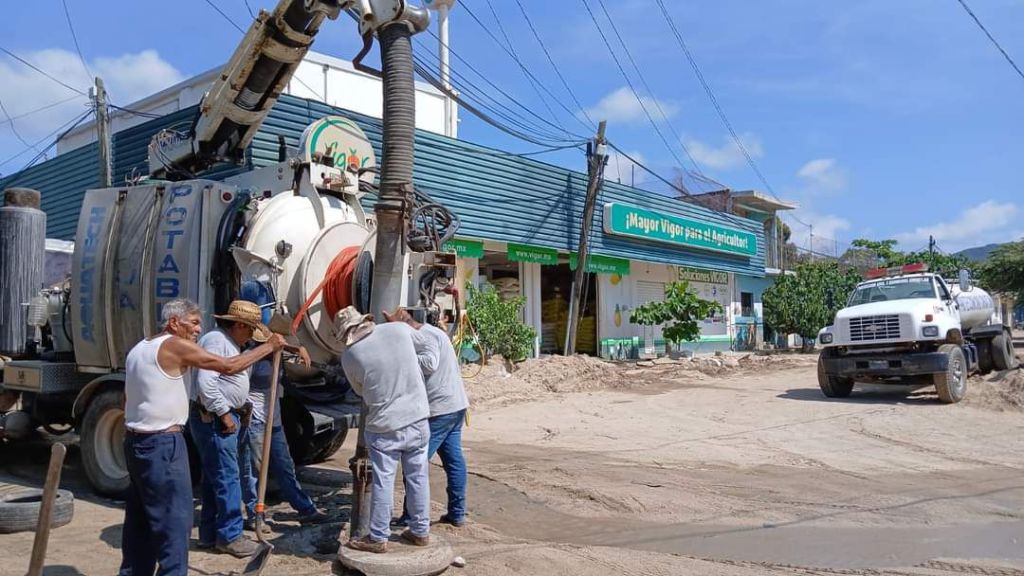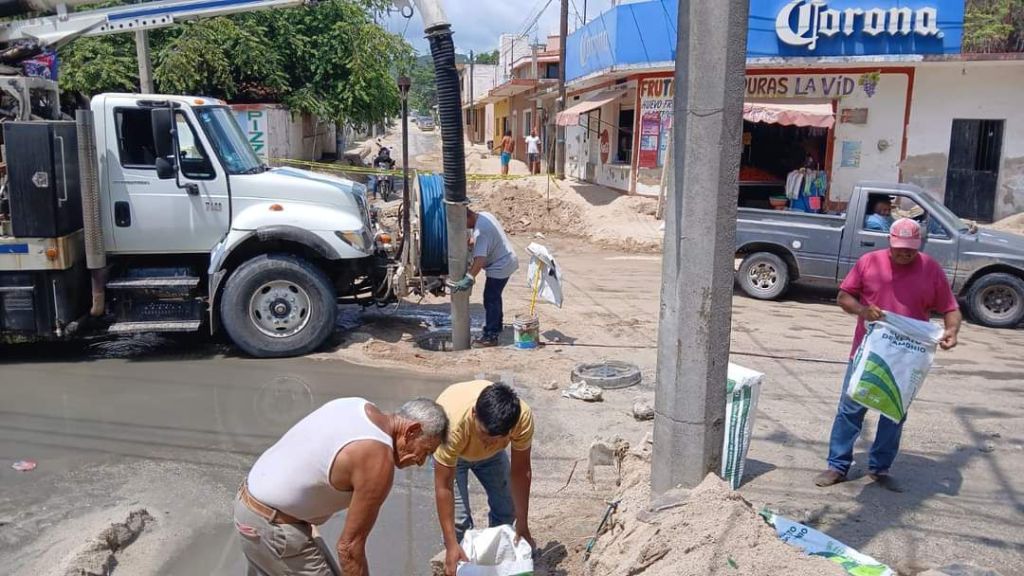 La cuadrilla de trabajadores del Gobierno de Cihuatlán esta realizando acciones extraordinarias para desazolvar la dañada red de drenaje y alcantarillado de la ciudad.