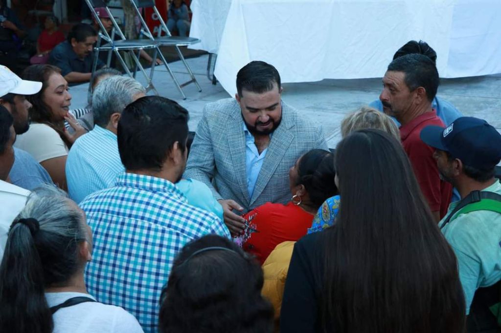 Cientos de personas, en un ambiente festivo, felicitaron al presidente municipal y colaboradores, en un ambiente festivo.