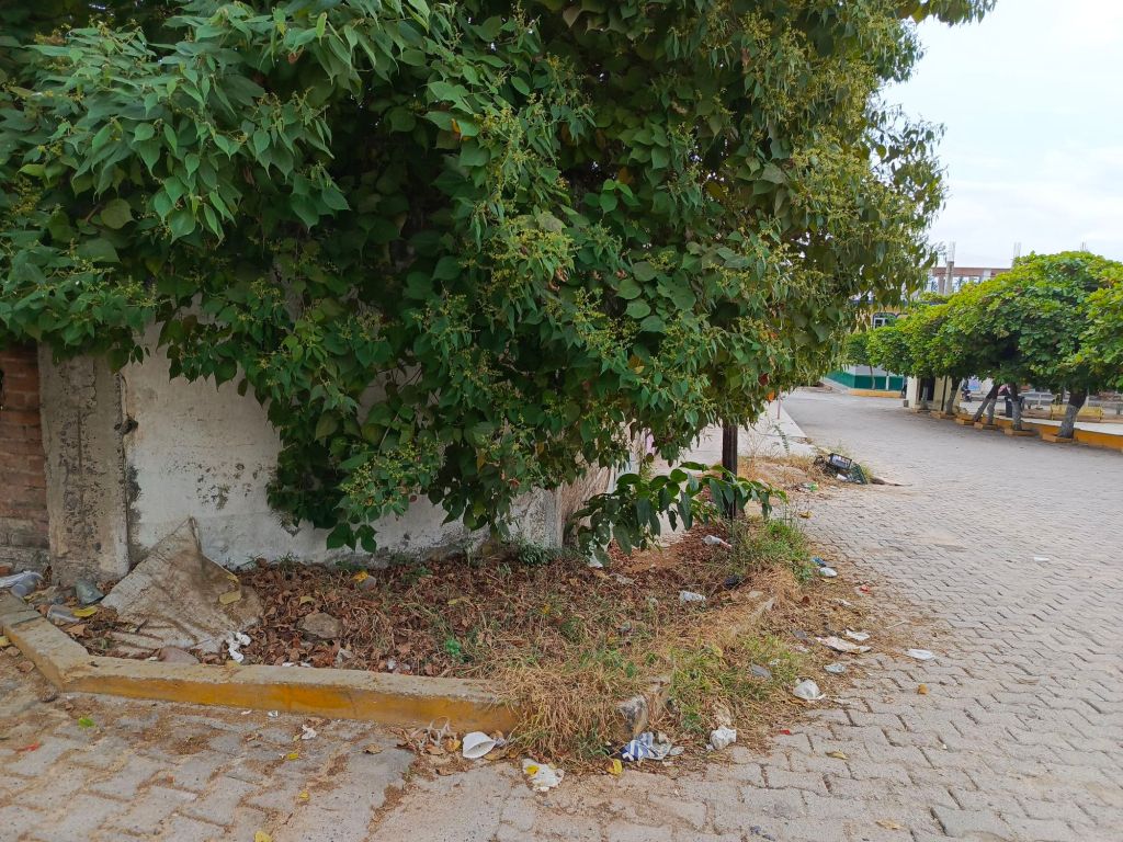 A unos metros de la sede del Ayuntamiento se limpió de maleza y basura, en la esquina de la transitada calle Juárez.