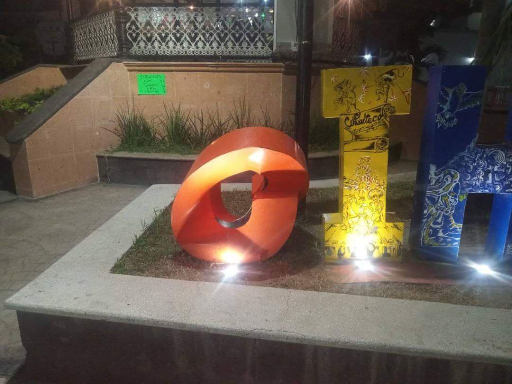 En el jardín principal de este municipio costero fue dañada una letra de la palabra Cihuatlán.